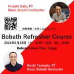 - Bobath Refresher Course 13-14 June 2026基礎講習会参加者を対象とした3日間のコースです。 コース概要 日時 2026年6月13日(土)9:00~6月14日(日)16:00 会場 Rehabilitation Plus, Tokyo 〒167… 続きを読む: Bobath Refresher Course 13-14 June 2026